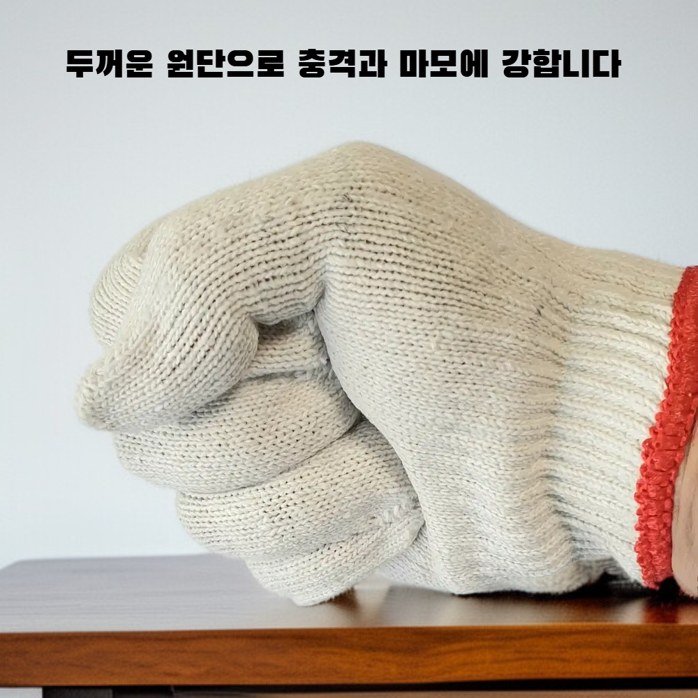 ● 튼튼한 니트면사와 나일론 소재로 제작되어 내구성이 뛰어나며, 장시간 작업에도 손을 안전하게 보호합니다.
